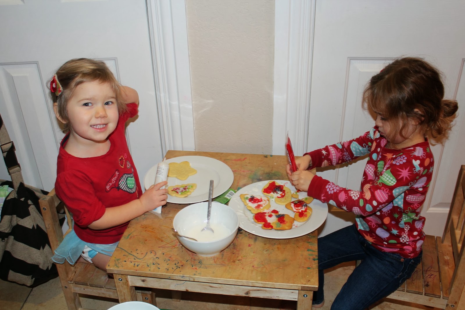 Haven hosted a little Christmas PJ party for a few friends while all their big siblings were at school. It was nice for these 4 girls to get to play together without the big kids coming up with all the ideas. Here she is excitedly waiting for everyone to come over. On a sidenote, in December Haven started doing this funny crooked smile, so she is like that in all the Christmas pictures. Not sure where she got it from, but it cracks me up!